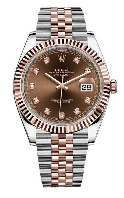 Model Number: 126301-0001  Collection : Datejust  Item Shape : Round  Clasp Type : Folding Oysterclasp with Easylink 5 mm comfort extension link  Caliber: 3235  Functions: Centre hour, minute and seconds hands. Instantaneous date with rapid setting. Stop-seconds for precise time setting  Case material: Everose Rolesor - combination of 904L steel and 18 ct Everose gold  Case diameter: 41 mm Crown: Screw-down, Twinlock double waterproofness system  Bezel material: Everose Rolesor - combination of 904L steel and 18 ct Everose gold  Bezel function: Smooth  Hour Markers : Index  Band Material : Everose Rolesor - combination of 904L steel and 18 ct Everose gold  Dial colour : Chocolate  Movement : Perpetual, mechanical, self-winding  Water Resistant: 100 m Crystal : Sapphire  Watch Label : Swiss Made  Power reserve : 70 hour