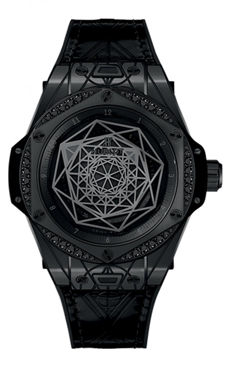 Bezel material: polished black-plated bezel set with 48 black diamonds (0.70ct) with 6 H-shaped black-plated titanium