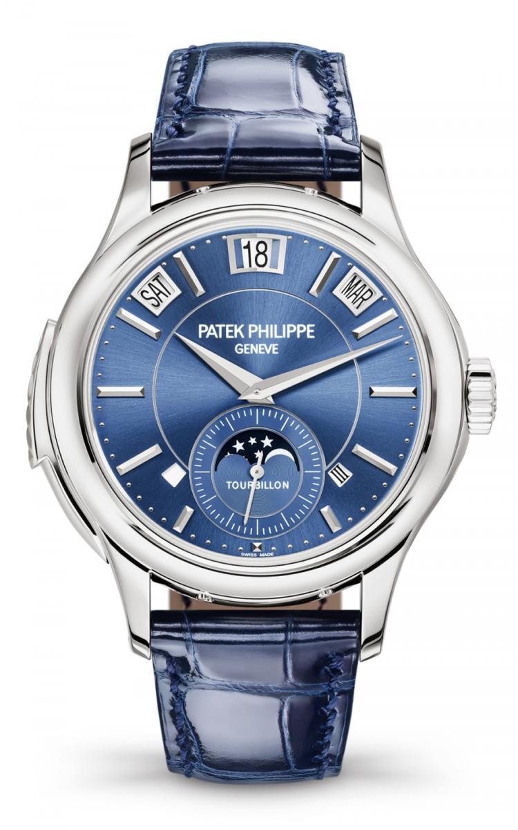 Model Number: 5205G-013  Collection : Complications  Item Shape : Round  Clasp Type : Buckle  Caliber: 324 S QA LU 24H  Functions: Hours, Minutes, Seconds, Additional 24 Hour Hand, Date, Annual Calendar, Day, Month, Moonphase  Case material: White gold  Case diameter: 40 mm Case Thickness: 11.36 mm Bezel material: White gold  Bezel function: Fixed  Band Material : (Alligator) Leather  Band Colour : Shiny Black  Dial colour : Blue  Movement : Automatic  Water Resistant: 30 m Crystal : Sapphire  Watch Label : Swiss Made  Power reserve : 45 hour