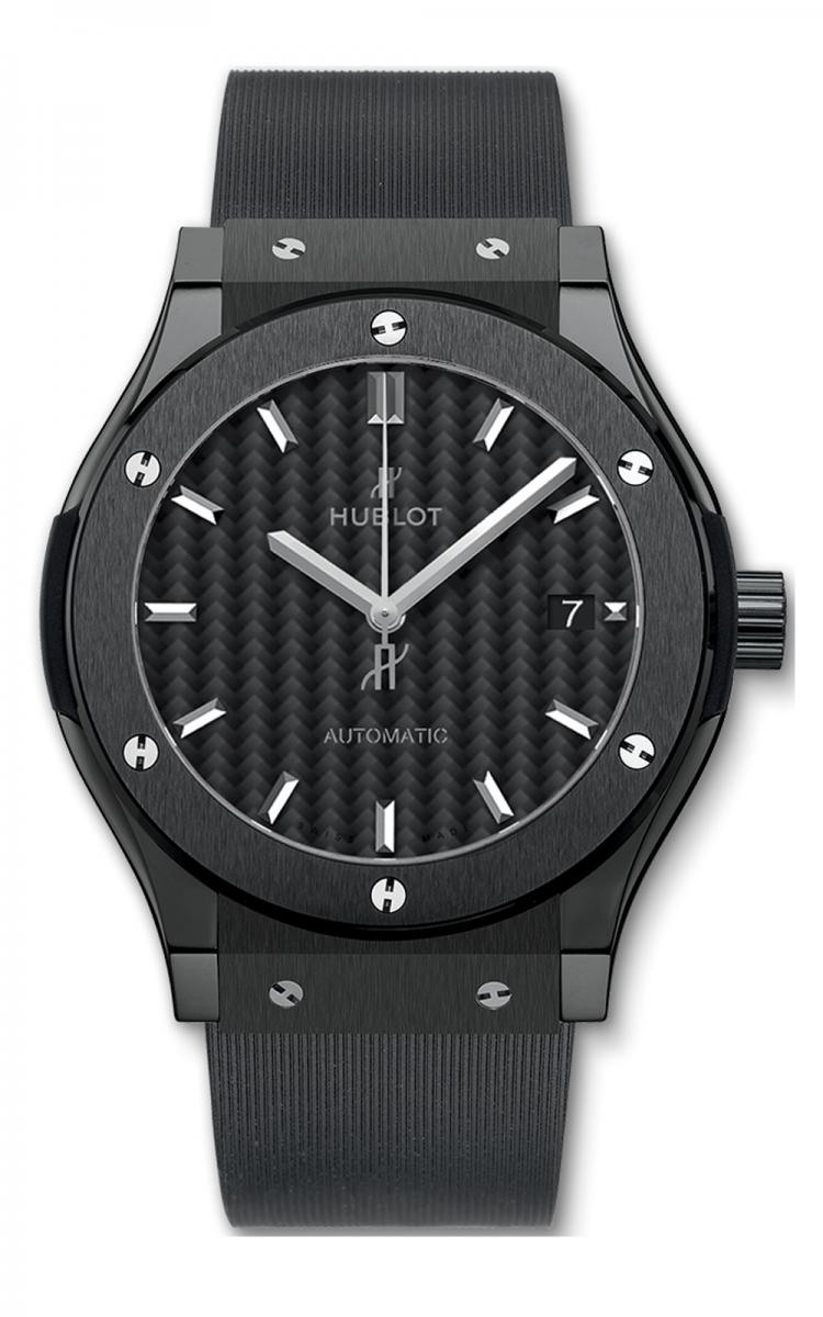 Bezel material: polished black-plated bezel set with 48 black diamonds (0.70ct) with 6 H-shaped black-plated titanium